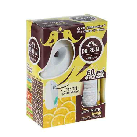 ДИСПЕНСЕР комплект Освежитель воздуха До-ре-ми Премиум ЛИМОН автом. с батарейкой