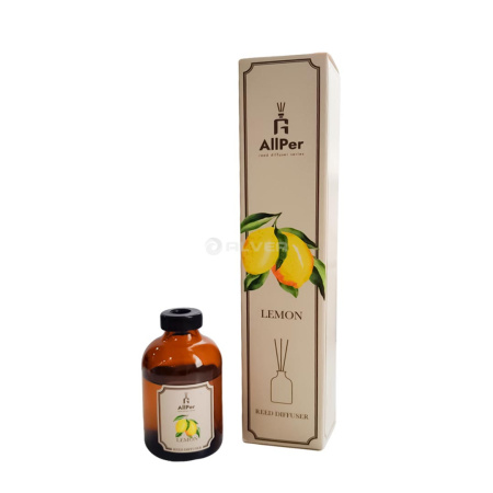 Диффузор ALLPER Лимон 40 мл. Ароматизатор воздуха: Обеспечивает приятный и свежий запах доме, офисе, автомобиле, кафе, ресторане и во всех других помещениях. Распространяет приятный запах на протяжении от 1 до 3 недель в зависимости от условий и температуры окружающей среды. Инструкция по применению: 1) Откройте крышку бутылки. 2) Извлеките пробку. 3) Вставьте крышку и поместите в бутылку бамбуковые палочки. 4) Когда вы почувствуете уменьшение интенсивности запаха, переверните бамбуковые палочки. Для того, чтобы выбрать на ваше усмотрение желаемую интенсивность запаха, вы можете увеличить или уменьшить количество палочек. Пожалуйста, прочитайте предупреждения и инструкцию по применению. Хранить в недоступном для детей месте. Перед использованием прочитайте этикетку.